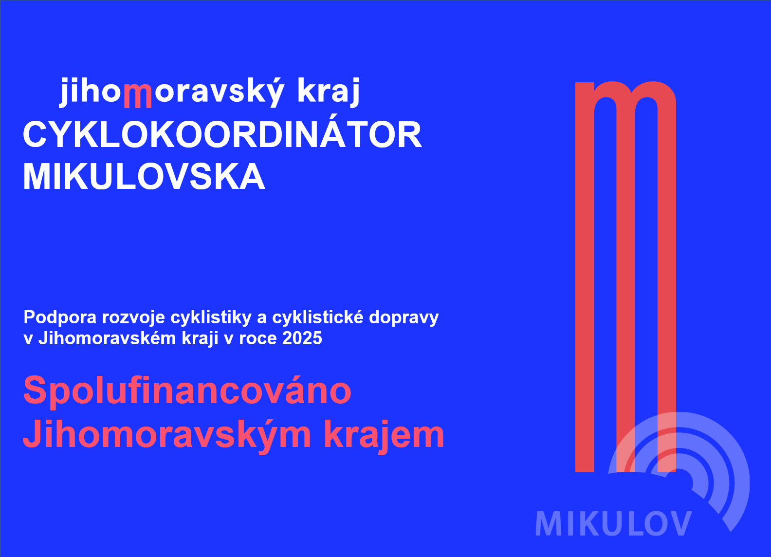 Území ORP Mikulov zahrnuje celkem 17 obcí včetně Města Mikulov, územím je vedena řada cyklostezek a cyklotras včetně mezinárodních cyklokoridorů EV 9 a EV 13. Jihomoravský kraj podporuje činnosti mikroregionálního koordinátora v území ORP Mikulov v souladu s Koncepcí rozvoje cyklistiky Jihomoravského kraje do roku 2030.