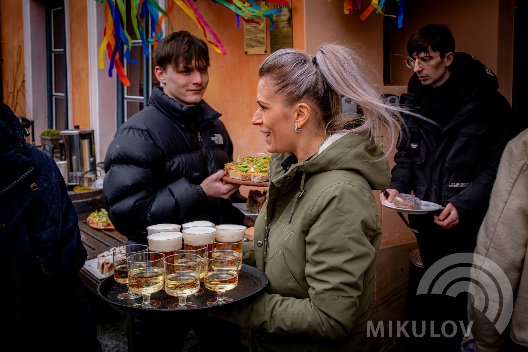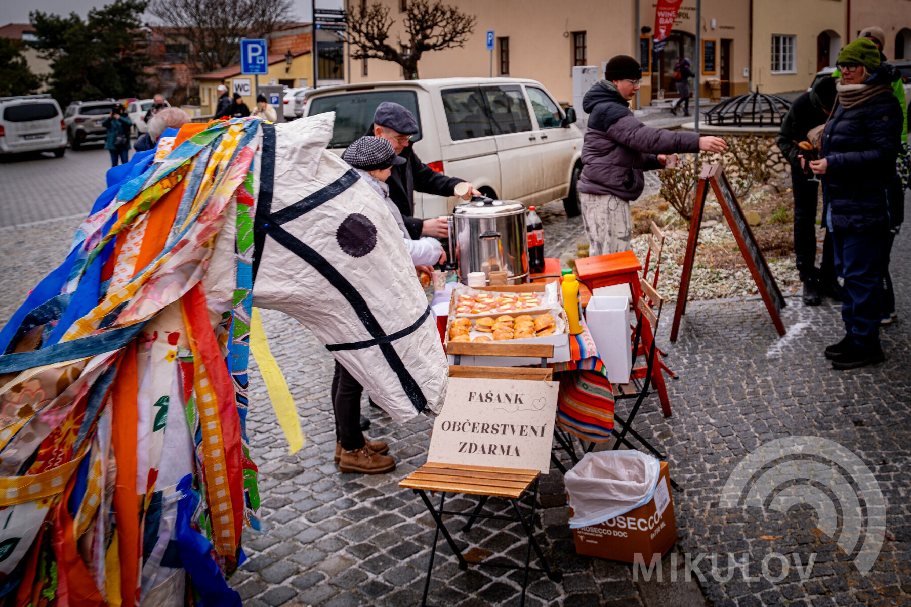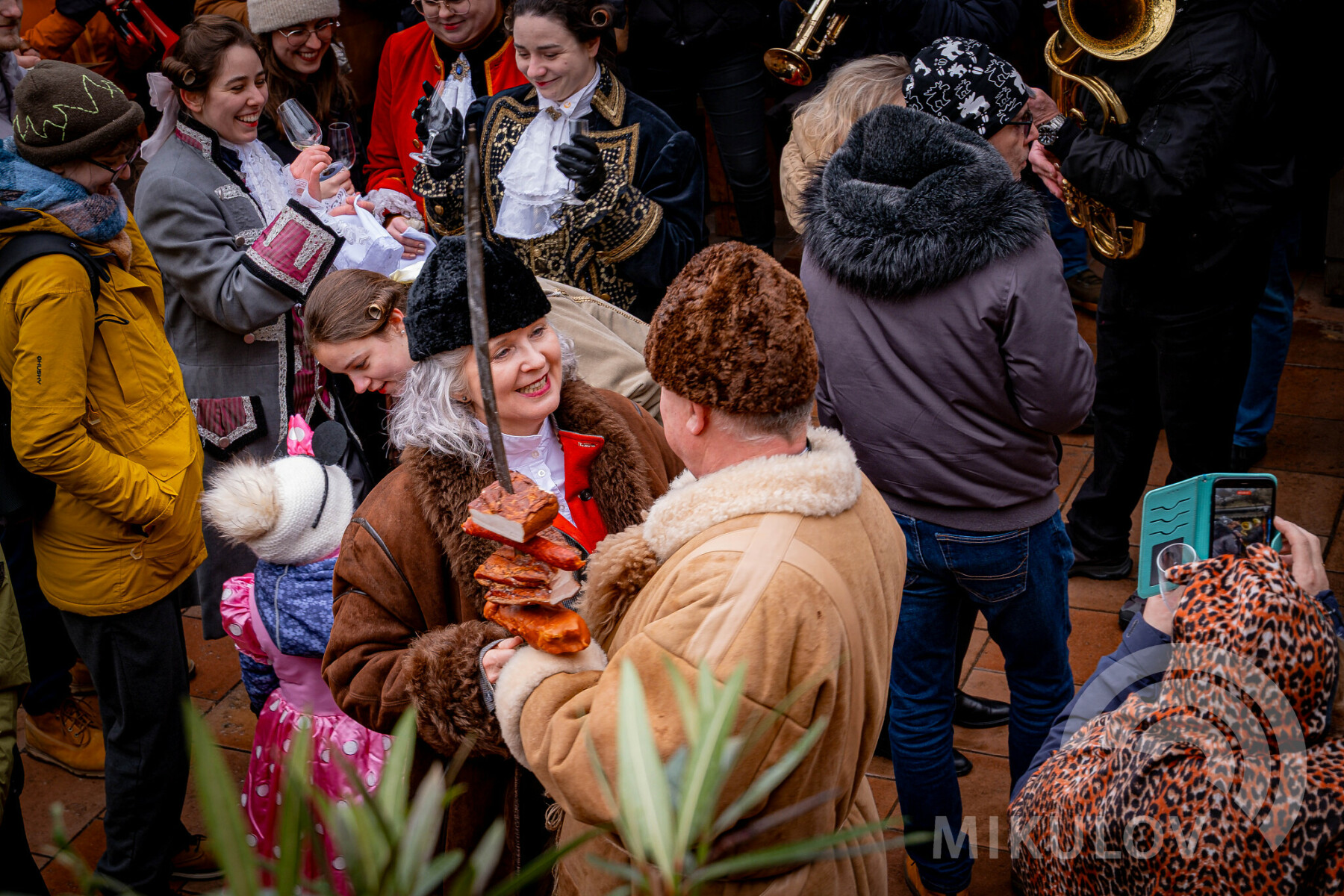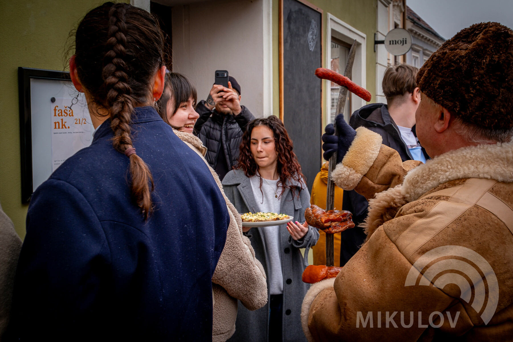 Díky vám všem měl Fašank přesně tu atmosféru, kvůli které se na něj každý rok těšíme. Děkujeme podnikům za otevřené dveře a pohoštění, muzikantům cimbálové muziky Píšťalenka, dechové hudbě Mikulovanka, tanečníkům NS Pálava i každému, kdo se přidal – v masce nebo jen tak.