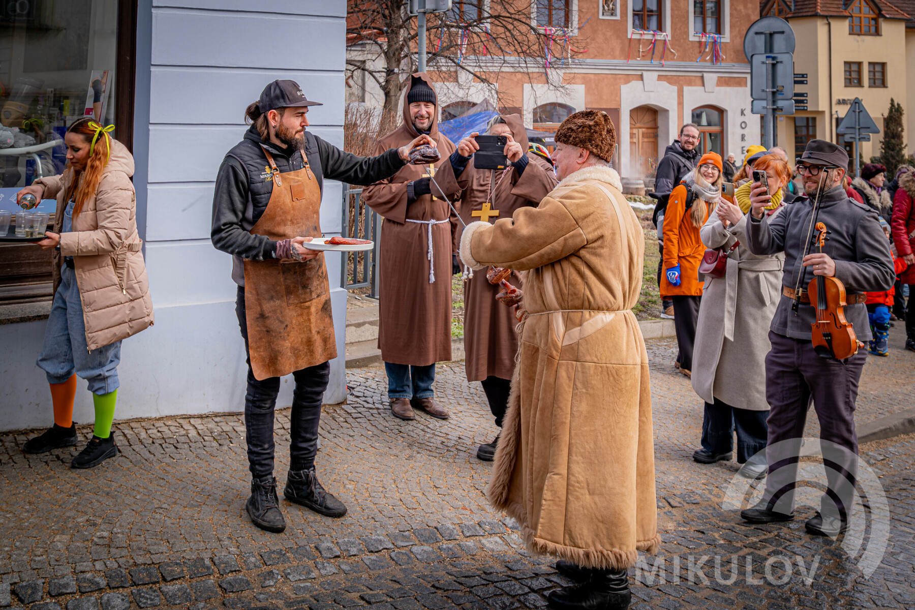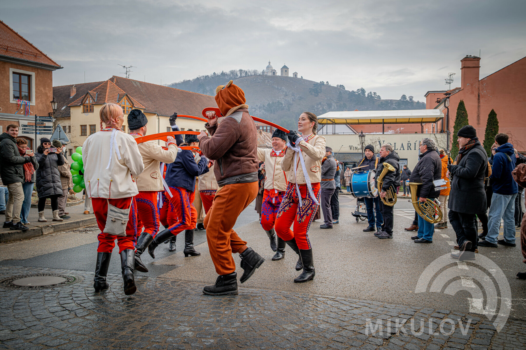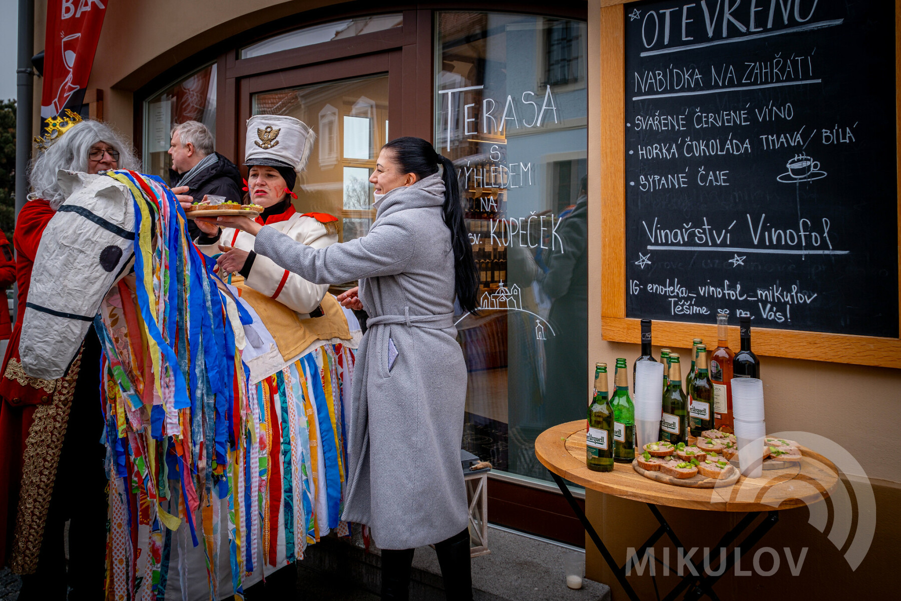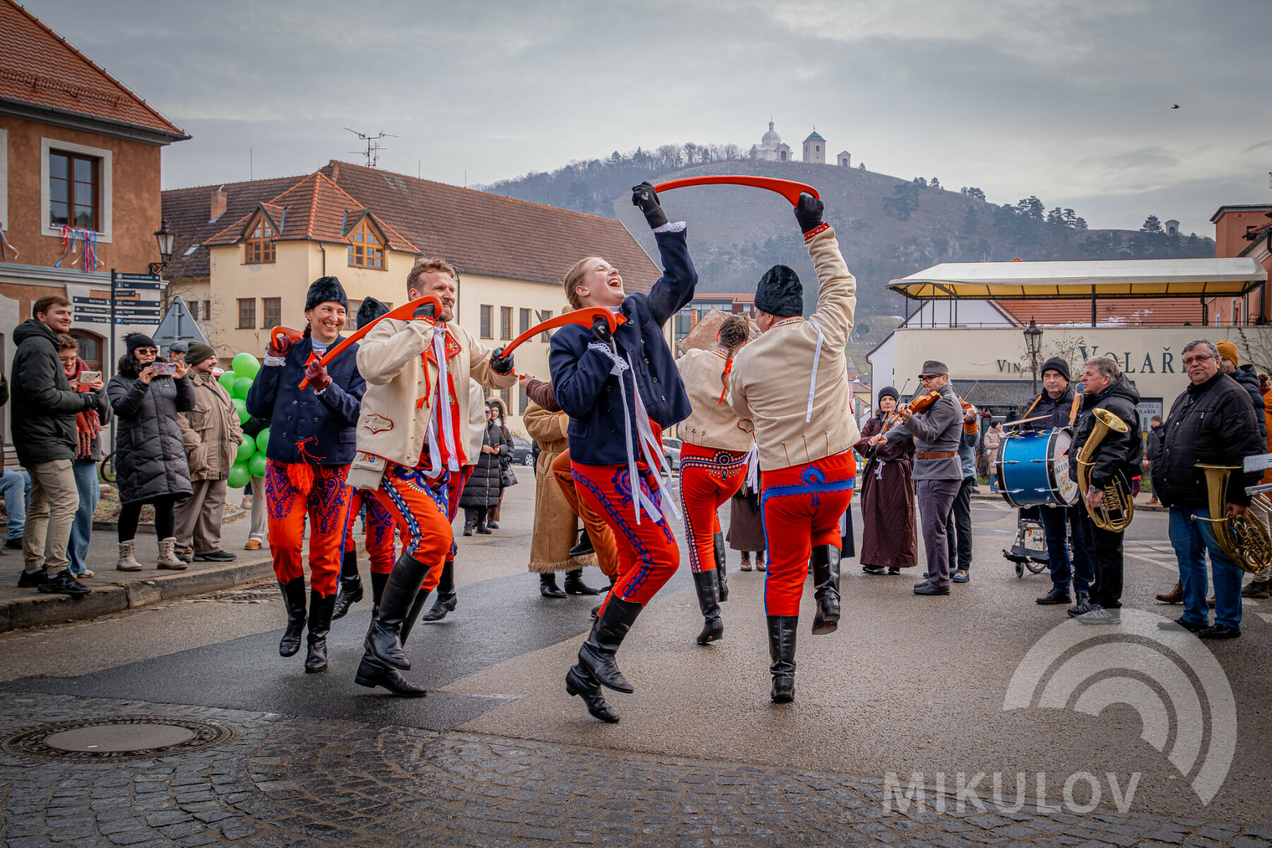 Díky vám všem měl Fašank přesně tu atmosféru, kvůli které se na něj každý rok těšíme. Děkujeme podnikům za otevřené dveře a pohoštění, muzikantům cimbálové muziky Píšťalenka, dechové hudbě Mikulovanka, tanečníkům NS Pálava i každému, kdo se přidal – v masce nebo jen tak.