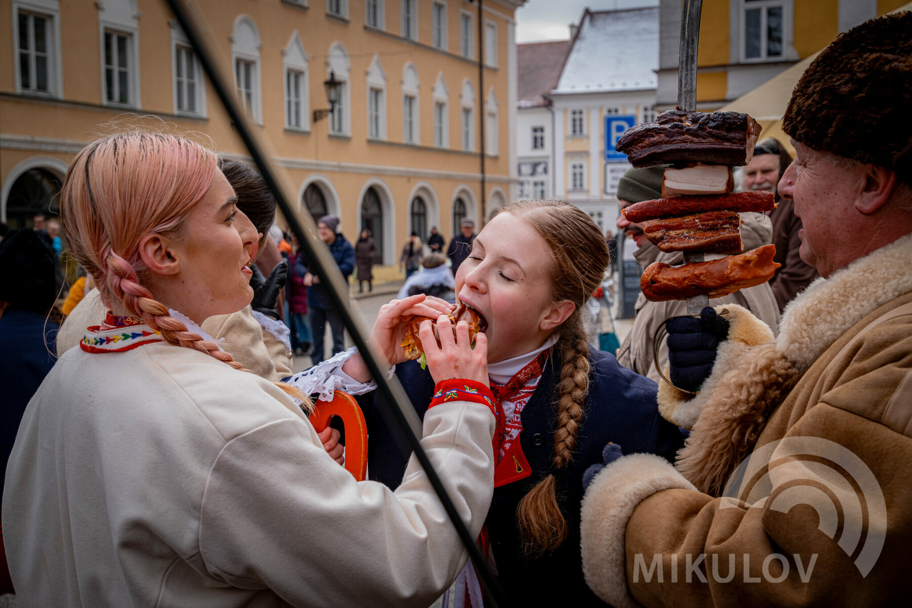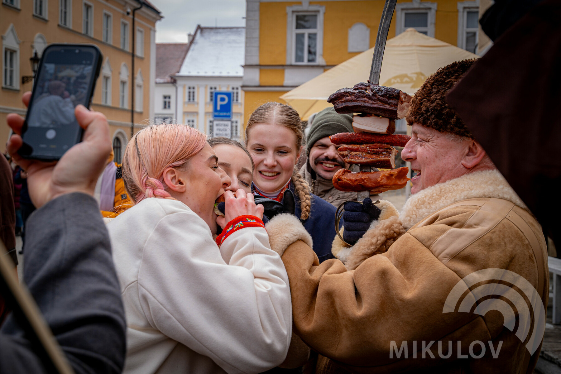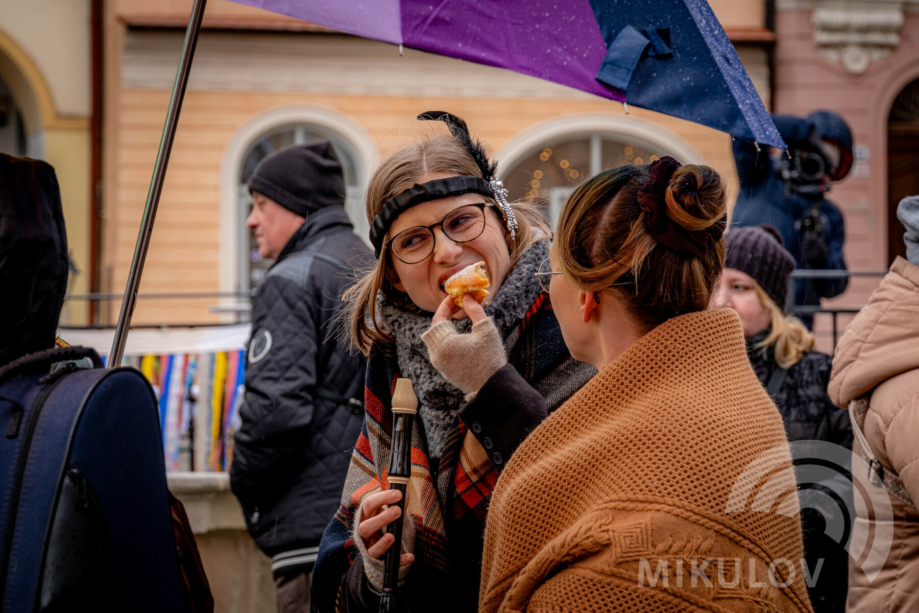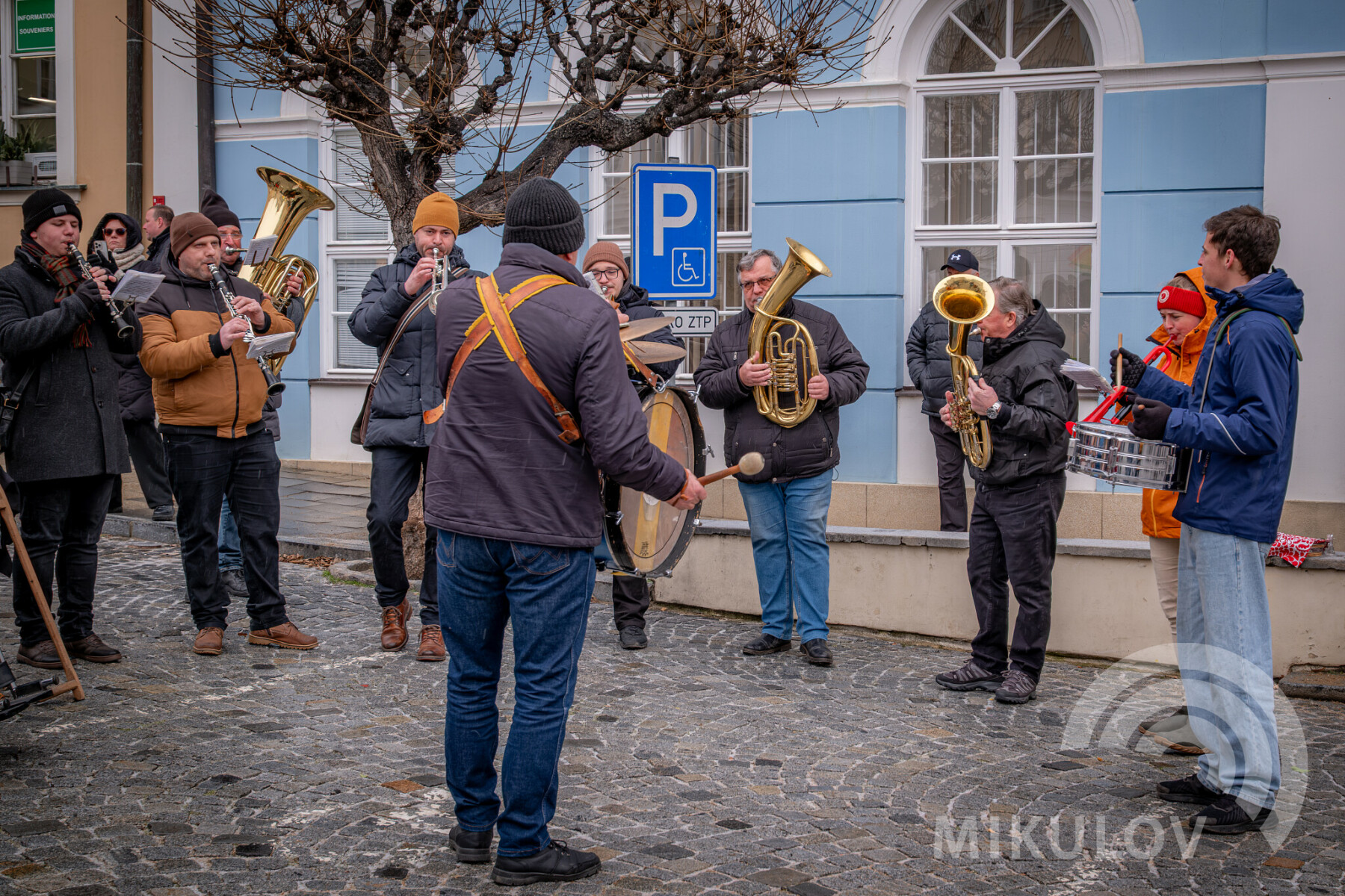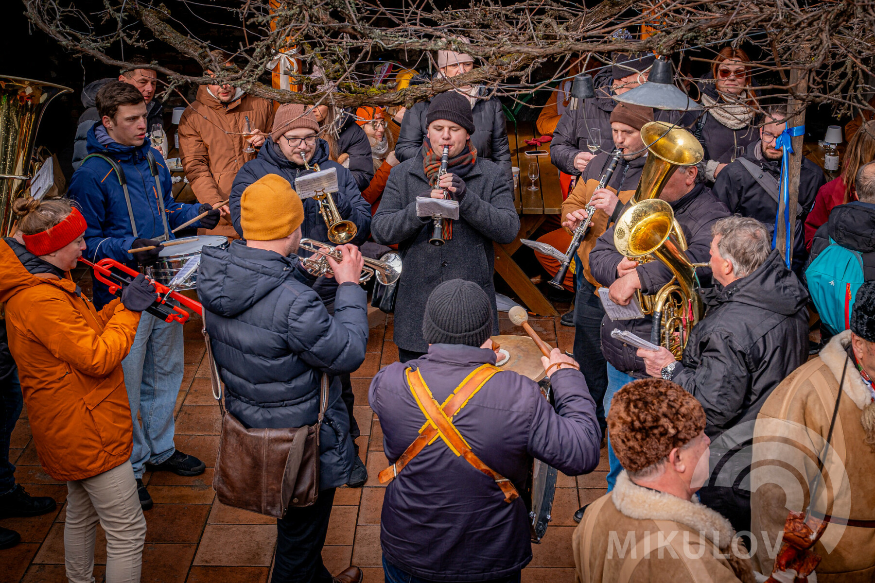 Díky vám všem měl Fašank přesně tu atmosféru, kvůli které se na něj každý rok těšíme. Děkujeme podnikům za otevřené dveře a pohoštění, muzikantům cimbálové muziky Píšťalenka, dechové hudbě Mikulovanka, tanečníkům NS Pálava i každému, kdo se přidal – v masce nebo jen tak.