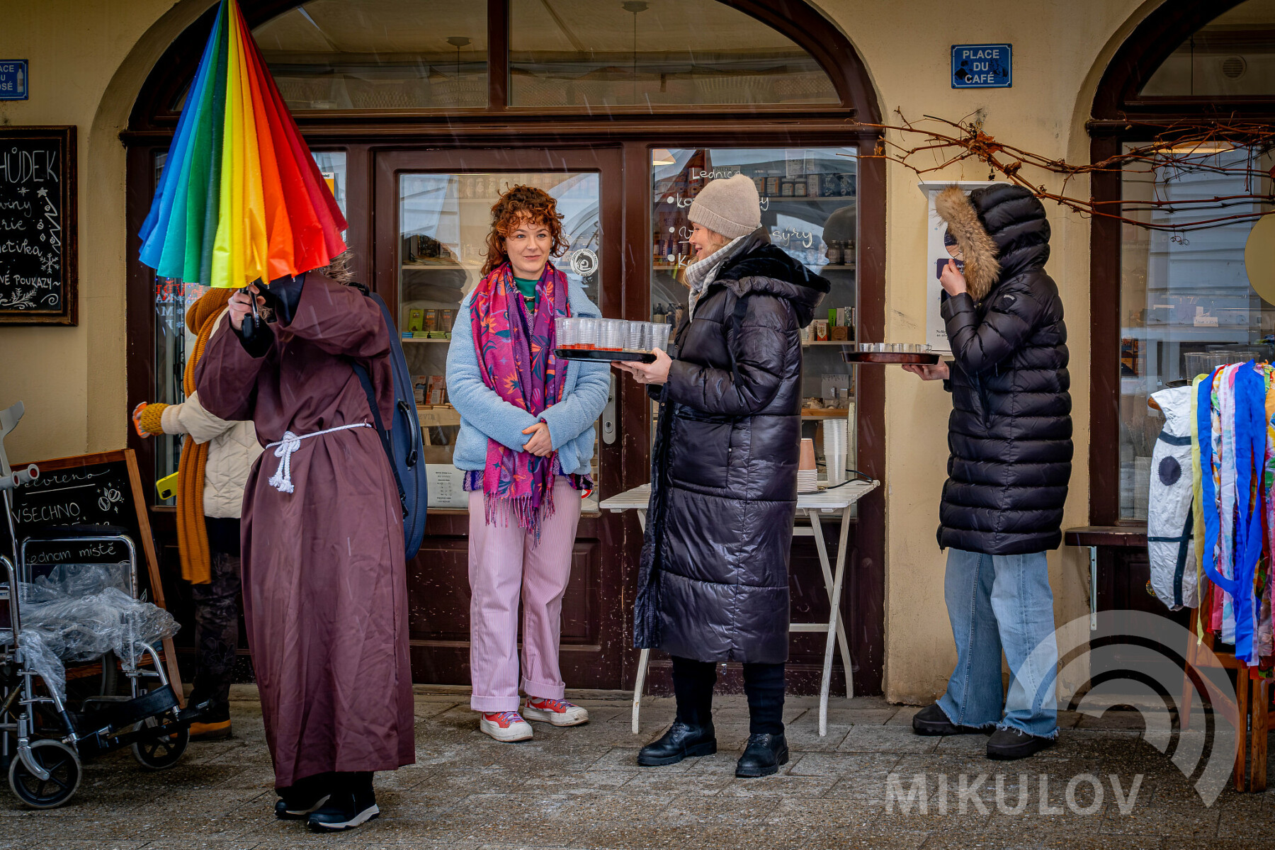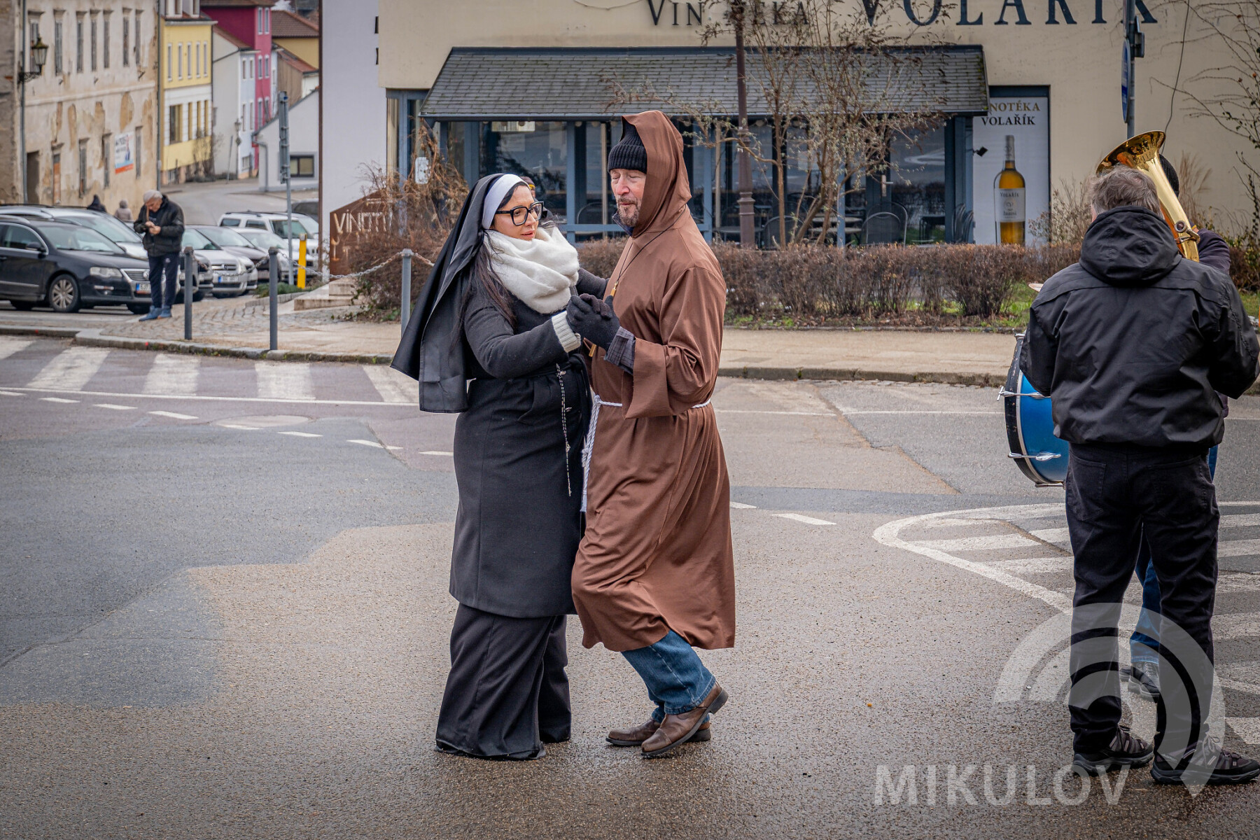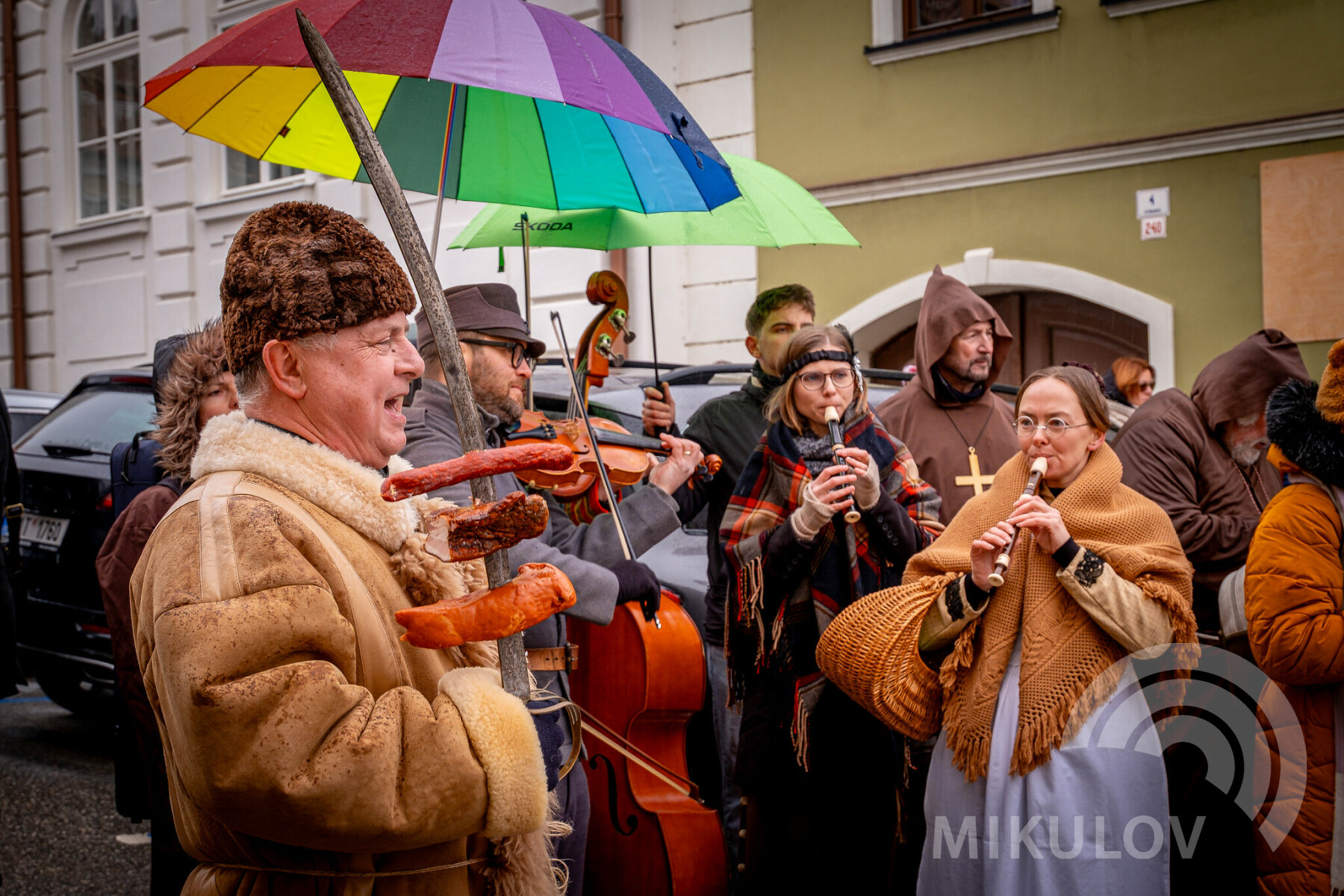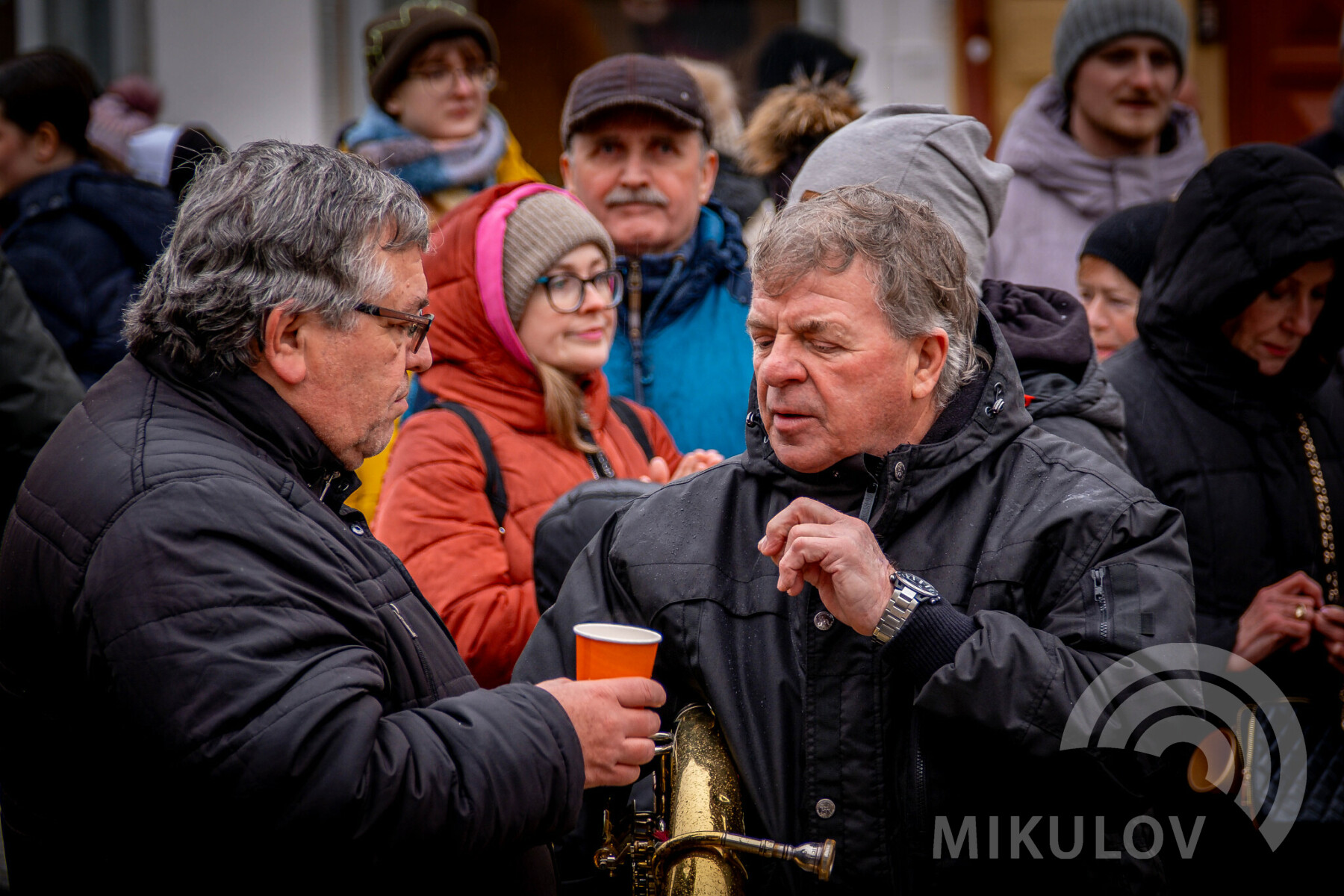 Díky vám všem měl Fašank přesně tu atmosféru, kvůli které se na něj každý rok těšíme. Děkujeme podnikům za otevřené dveře a pohoštění, muzikantům cimbálové muziky Píšťalenka, dechové hudbě Mikulovanka, tanečníkům NS Pálava i každému, kdo se přidal – v masce nebo jen tak.