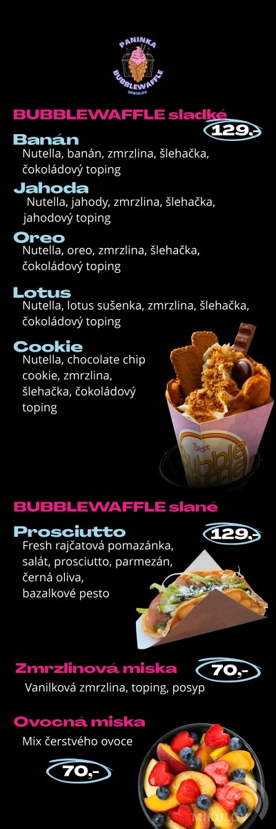 Pro otevírací dobu sledujte náš instagram: @paninka.bubblewaffle