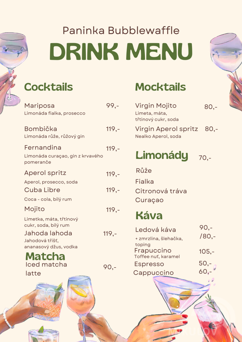 Součástí nabídky jsou osvěžující domácí květinové limonády, letní (jedinečné) drinky, káva a oblíbené ledové kávy, které jsou ideální volbou během teplých dnů.