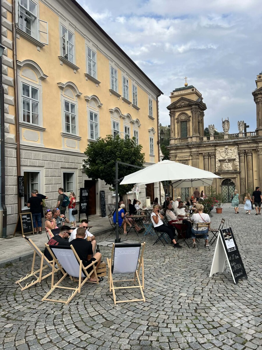 Vinné okýnko přímo na Náměstí, kde si můžete nejen koupit láhev s sebou ale i si nechat nalít do skleničky :)