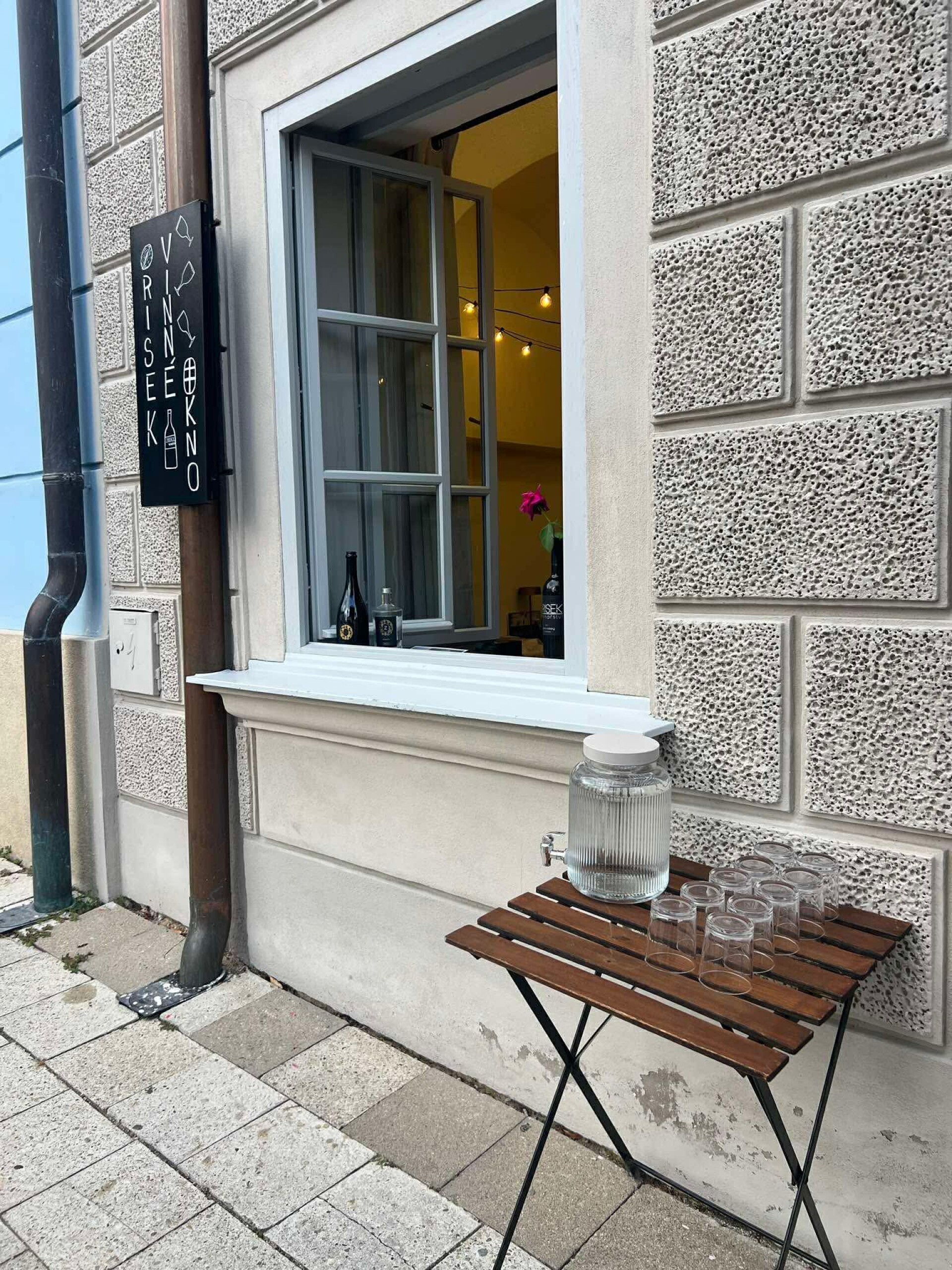 Vinné okýnko přímo na Náměstí, kde si můžete nejen koupit láhev s sebou ale i si nechat nalít do skleničky :)