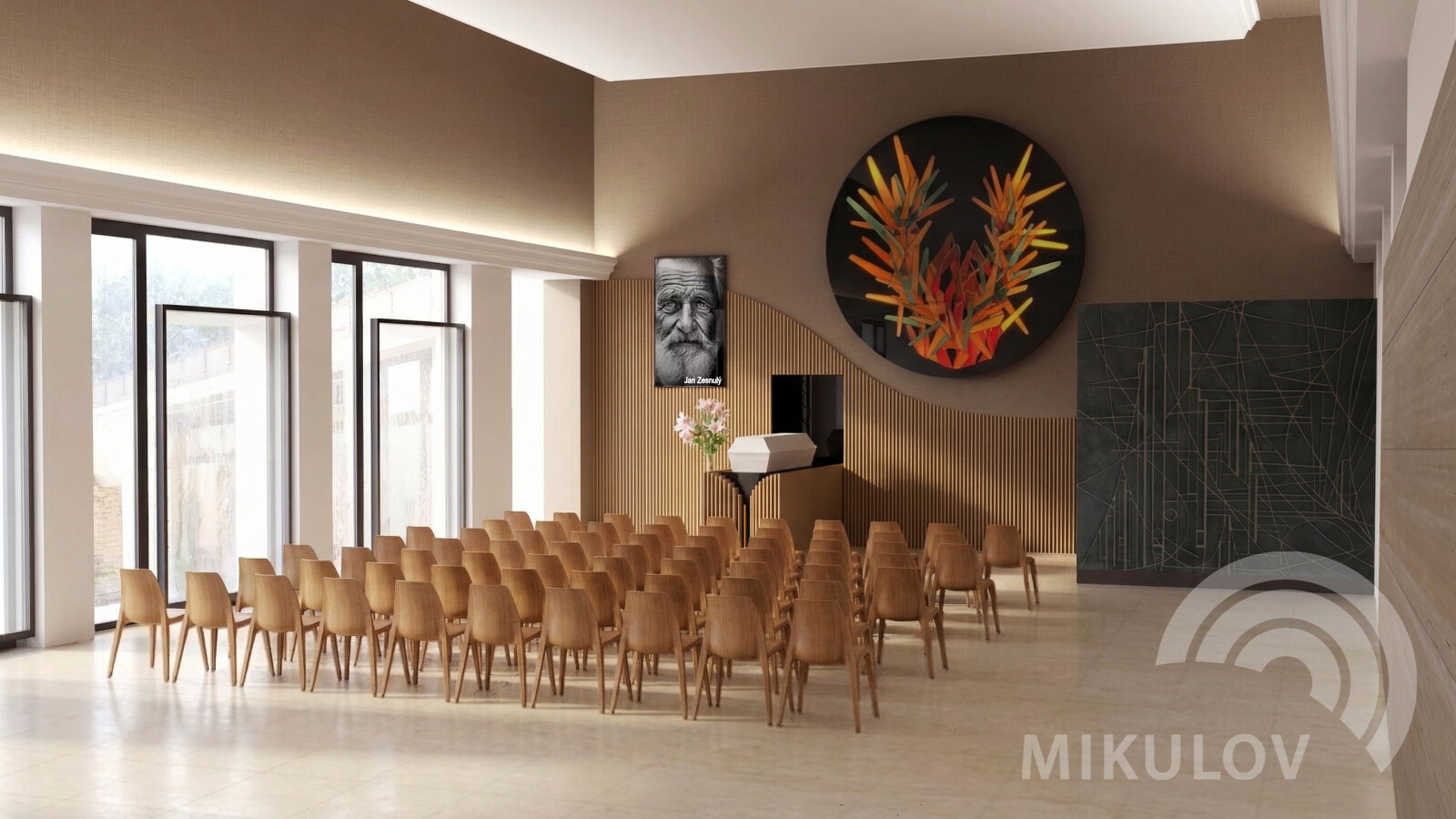 Cílem je obnova interiérů budovy se smuteční síní, foyer a zázemím pohřební služby, které byly narušeny předešlými statickými poruchami, kdy došlo k podchycení základů objektu a výměně střešní krytiny. Předpokládaný rozsah prací:
